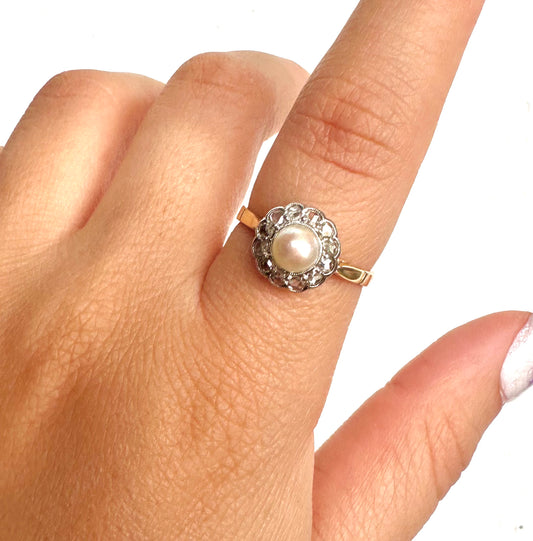 Blossom - 18k Vintage Gold with a Pearl and Diamonds