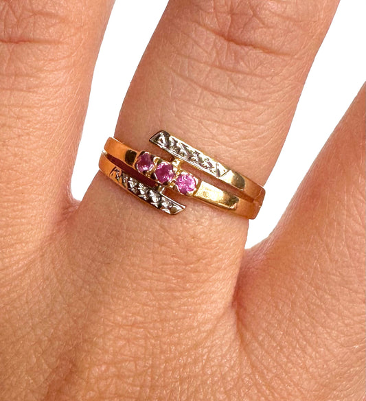 Rosella Spiral – Vintage 18K Gold Ring with 3 Pink Spinels