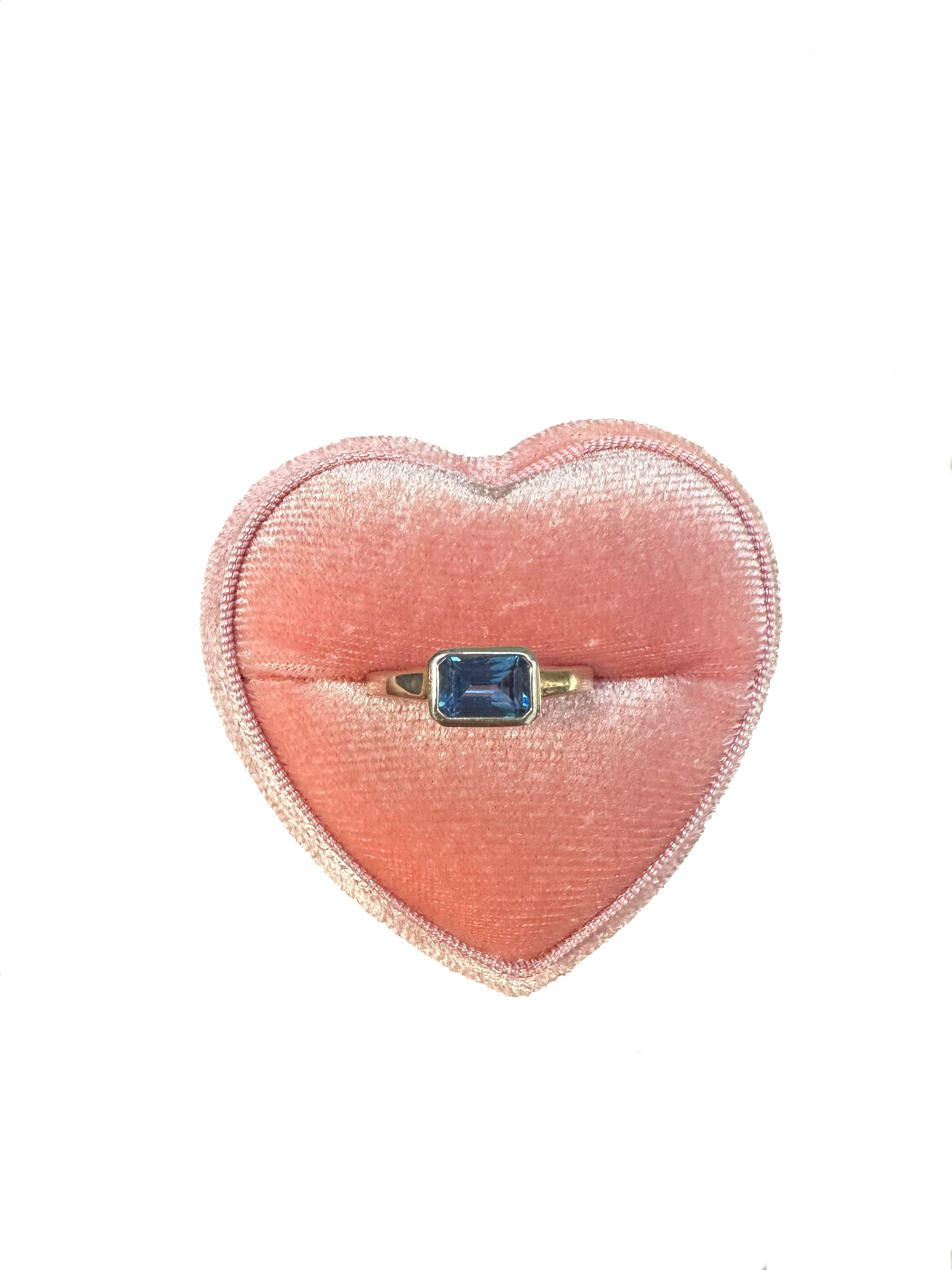 This simple silver band has a bright blue zircon right in the middle that really catches the eye. It’s a clean, modern design that’s comfy to wear every day and works great on its own or stacked with your other favorite rings.
